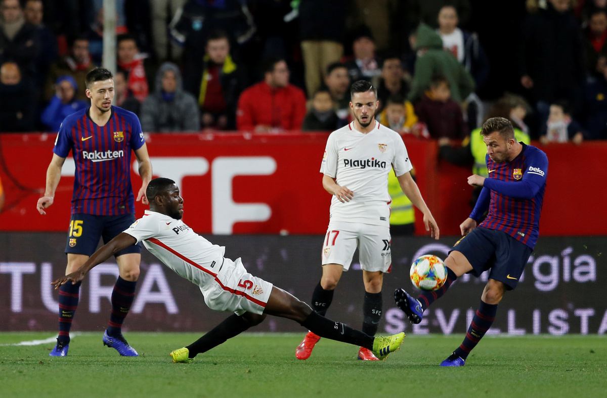 SEVILLE, Spain (Reuters) - Sevilla produced a brilliant second-half display to beat Barcelona 2-0 in their Copa del Rey quarter-final, first leg on Wednesday, leaving the holders with an uphill task to reach the last four.