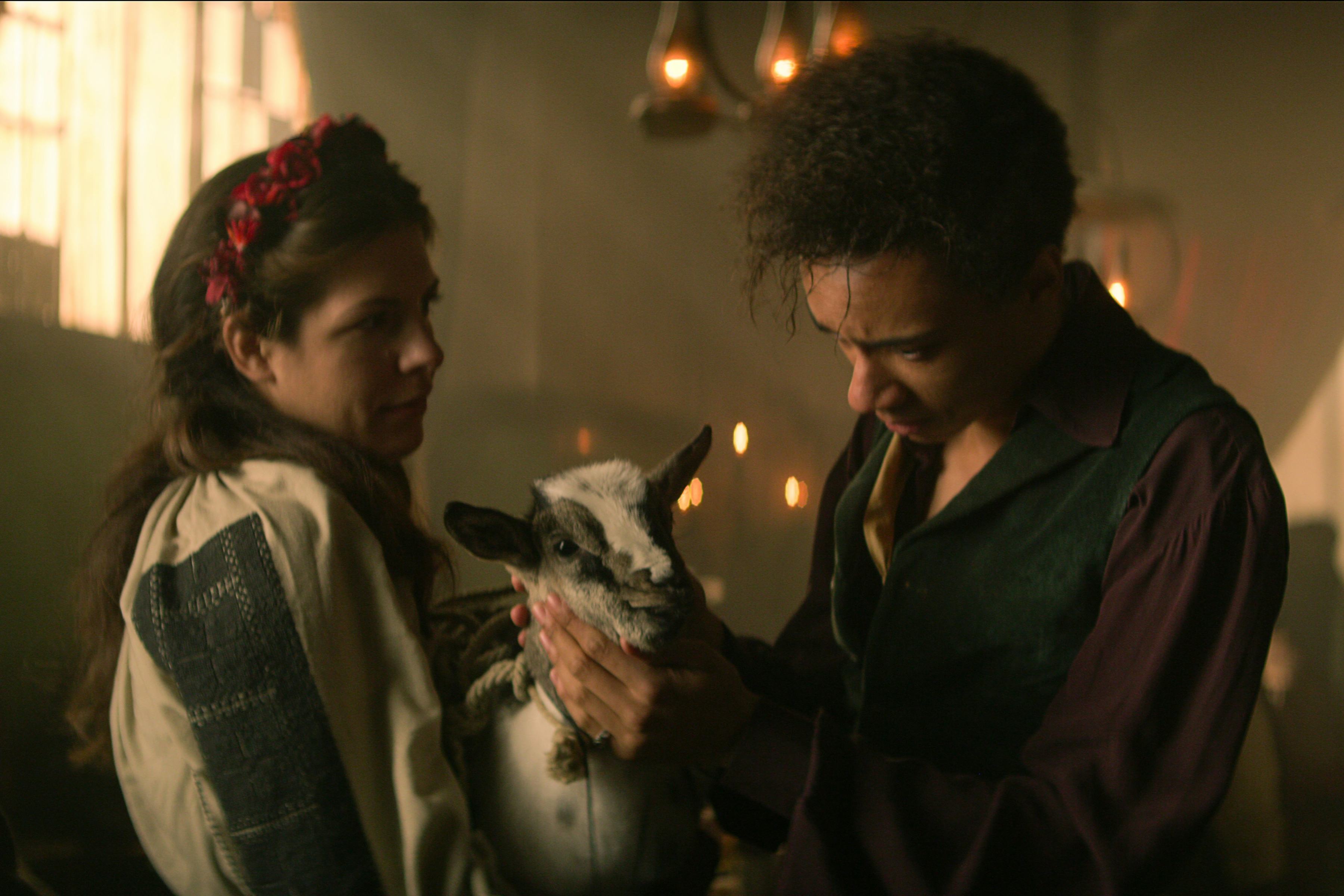 Ugri and Bugri may have been rascals between takes with Young, but they kept cool for one crucial take. When things start getting dicey in the Fold, Jesper realizes that Milo isn’t a sacrifice for the volcra, but a supportive companion. “We wanted to get this moment where Jesper is really needing this goat,” Young said. “The director was like, ‘What if you hug it?’ And I did.”