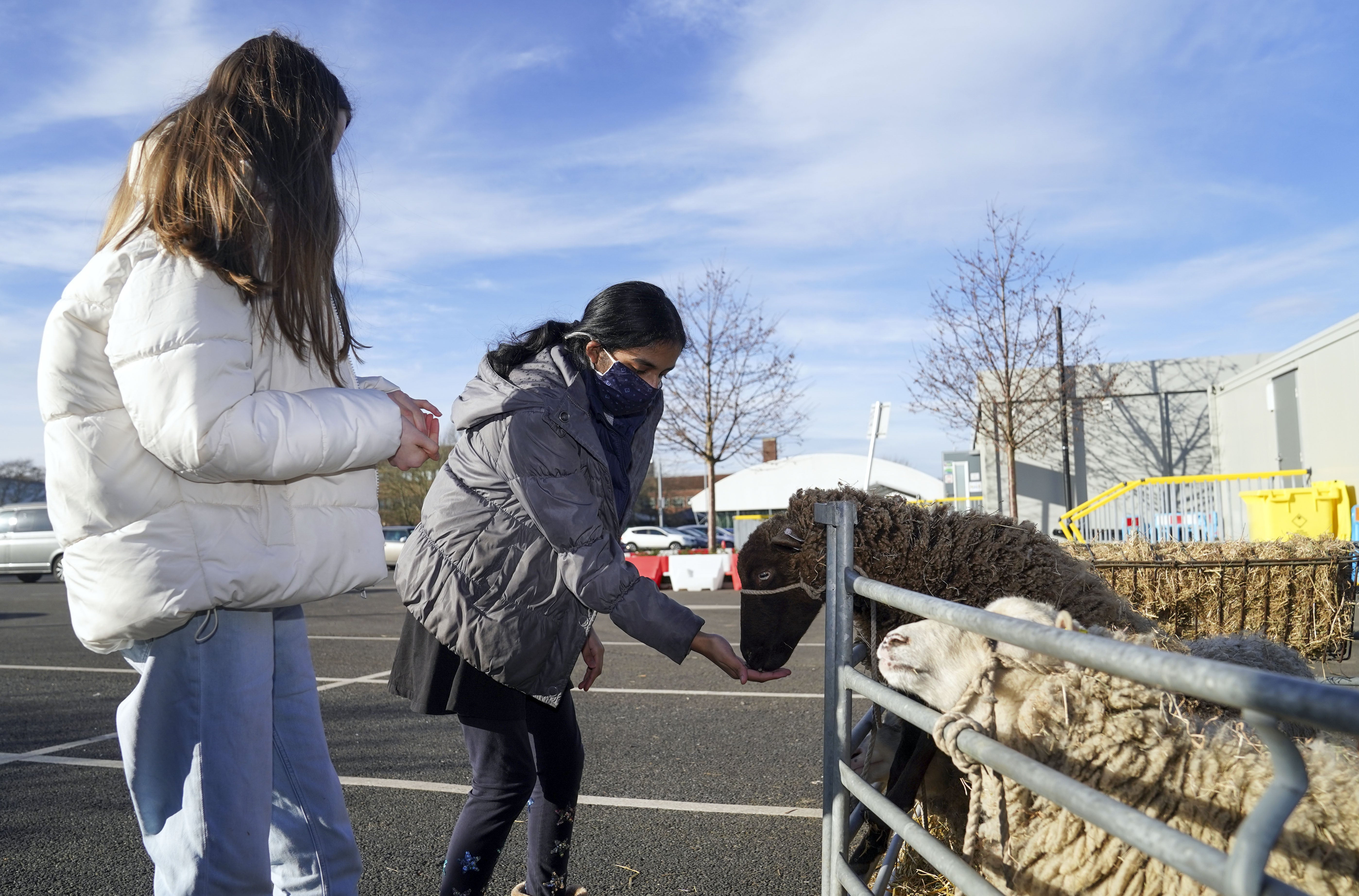 Shetland sheep – called Lashes, Cumin, Coriander Clove and Cardamom – were at hand in a petting zoo for the youngsters who went for their Covid-19 vaccination at Epsom’s North East Surrey College of Technology (Nescot) on Saturday.