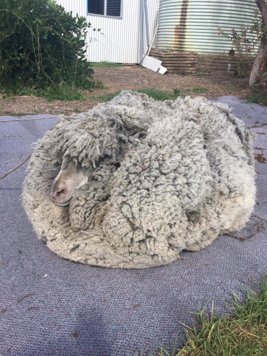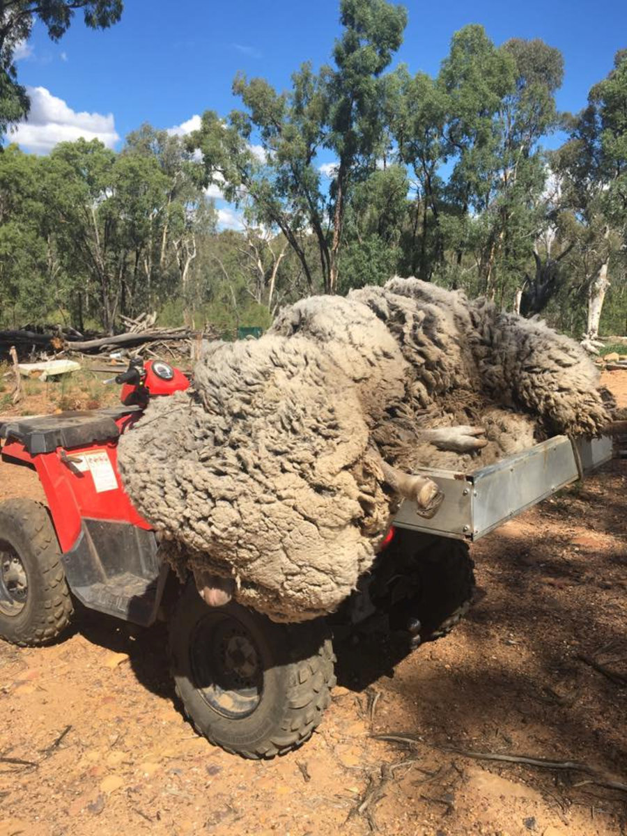 In a social media post that has gone viral, farmer Graeme Bowden shared pictures of the sheep he dubbed "shriek 2". He said a friend found the sheep with several years of growth, which he sheared to produce 30 kg (66 pounds) of wool - more than six times greater than the average fleece.