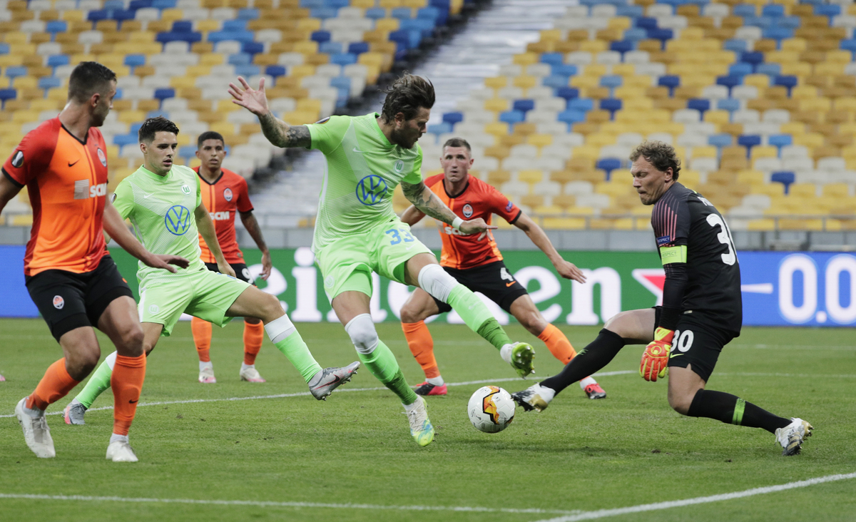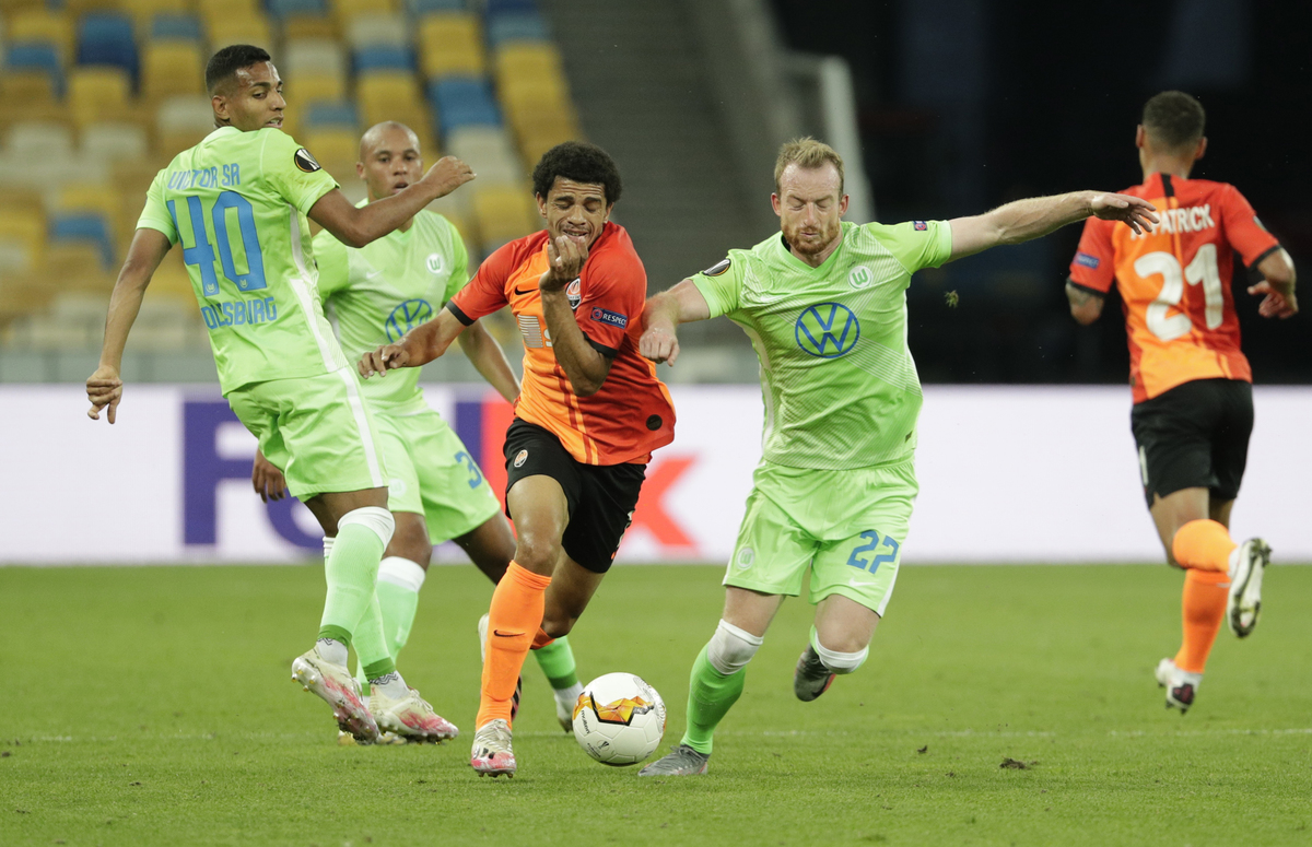 Shakhtar missed a hatful of first-half chances against Wolfsburg, with both sides reduced to 10 men in the second half after visiting goalkeeper Koen Casteels had pulled off a string of superb saves at the Olympic stadium.