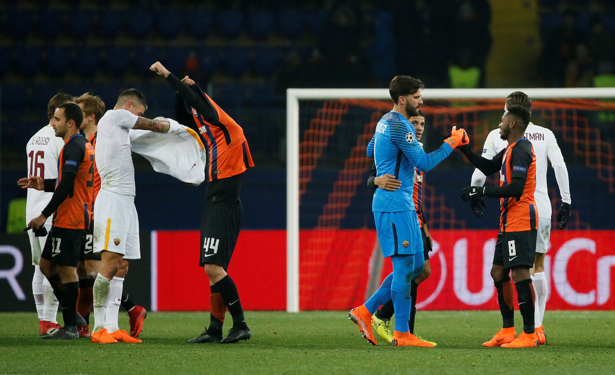 KHARKIV, Ukraine (Reuters) - Shakhtar Donetsk's South American blend proved too strong for AS Roma as goals from Facundo Ferreyra and Fred gave them a 2-1 win in a Champions League tie played in freezing conditions on Wednesday.