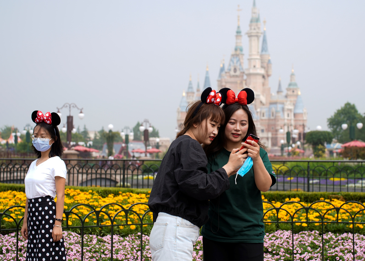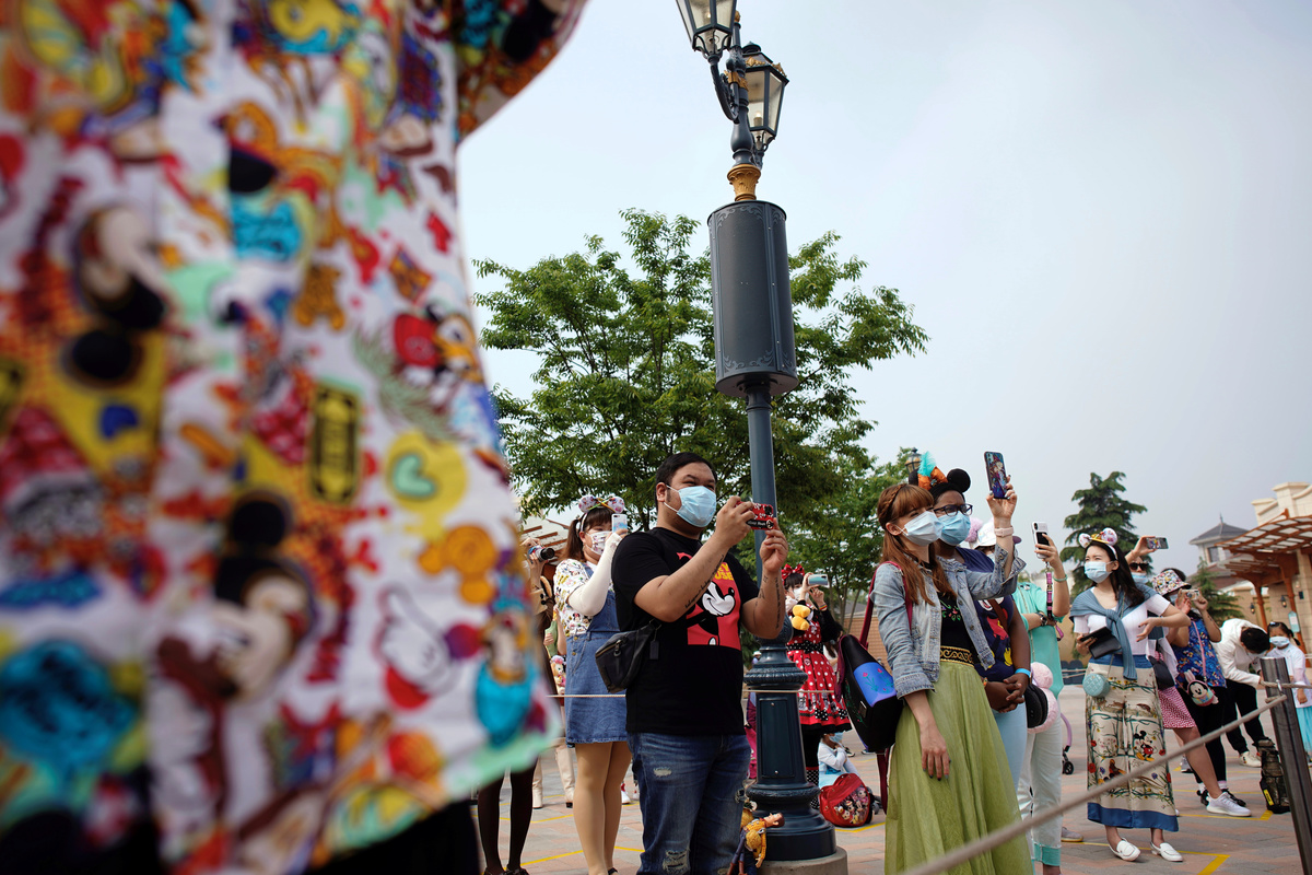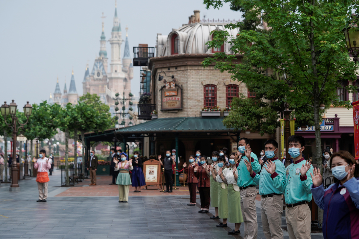 Visitors wearing face masks take pictures at the ceremony marking the reopening of Shanghai Disneyland following a shutdown due to the coronavirus disease (COVID-19) outbreak, at Shanghai Disney Resort in Shanghai, China May 11, 2020. REUTERS/Aly SongStaff members wearing protective face masks greet at Shanghai Disney Resort as the Shanghai Disneyland theme park reopens following a shutdown due to the coronavirus disease (COVID-19) outbreak, in Shanghai, China May 11, 2020. REUTERS/Aly SongA staff member wearing face mask gestures at Shanghai Disney Resort as the Shanghai Disneyland theme park reopens following a shutdown due to the coronavirus disease (COVID-19) outbreak, in Shanghai, China May 11, 2020. REUTERS/Aly SongVisitors wearing face mask line up following social distancing markers at Shanghai Disney Resort as the Shanghai Disneyland theme park reopens following a shutdown due to the coronavirus disease (COVID-19) outbreak, in Shanghai, China May 11, 2020. REUTERS/Aly SongDisney characters Mickey Mouse and Minnie Mouse are seen at Shanghai Disney Resort as the Shanghai Disneyland theme park reopens following a shutdown due to the coronavirus disease (COVID-19) outbreak, in Shanghai, China May 11, 2020. REUTERS/Aly SongA girl wearing face mask poses for a picture at Shanghai Disney Resort as the Shanghai Disneyland theme park reopens following a shutdown due to the coronavirus disease (COVID-19) outbreak, in Shanghai, China May 11, 2020. REUTERS/Aly SongStaff members wearing protective face masks greet at Shanghai Disney Resort as the Shanghai Disneyland theme park reopens following a shutdown due to the coronavirus disease (COVID-19) outbreak, in Shanghai, China May 11, 2020. REUTERS/Aly SongDisney character Mickey Mouse greets visitors at Shanghai Disney Resort as the Shanghai Disneyland theme park reopens following a shutdown due to the coronavirus disease (COVID-19) outbreak, in Shanghai, China May 11, 2020. REUTERS/Aly SongSecurity staff wear face masks at Shanghai Disney Resort as the Shanghai Disneyland theme park reopens following a shutdown due to the coronavirus disease (COVID-19) outbreak, in Shanghai, China May 11, 2020. REUTERS/Aly SongA security guard wears a face mask at Shanghai Disney Resort as the Shanghai Disneyland theme park reopens following a shutdown due to the coronavirus disease (COVID-19) outbreak, in Shanghai, China May 11, 2020. REUTERS/Aly SongStaff is seen at Shanghai Disney Resort as the Shanghai Disneyland theme park reopens following a shutdown due to the coronavirus disease (COVID-19) outbreak, in Shanghai, China May 11, 2020. REUTERS/Aly Song
