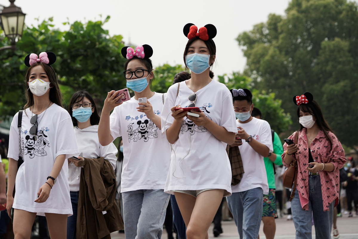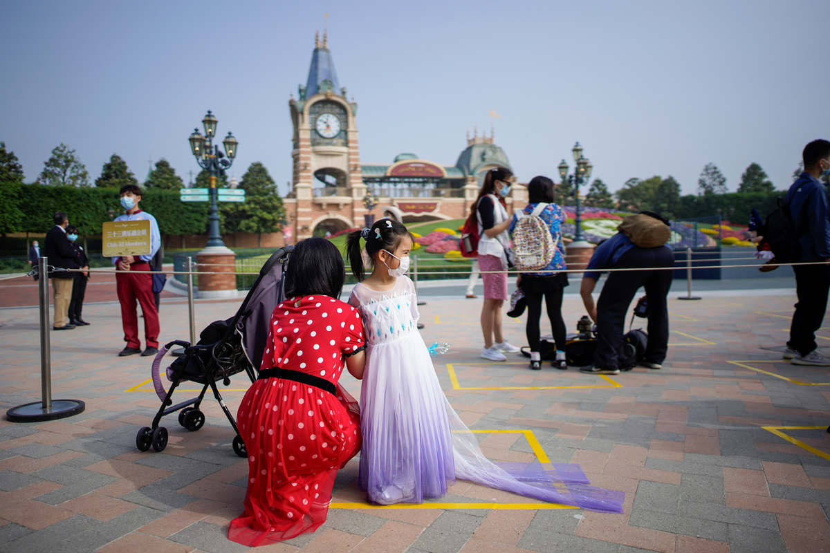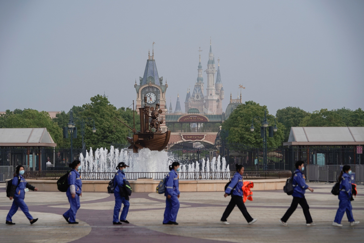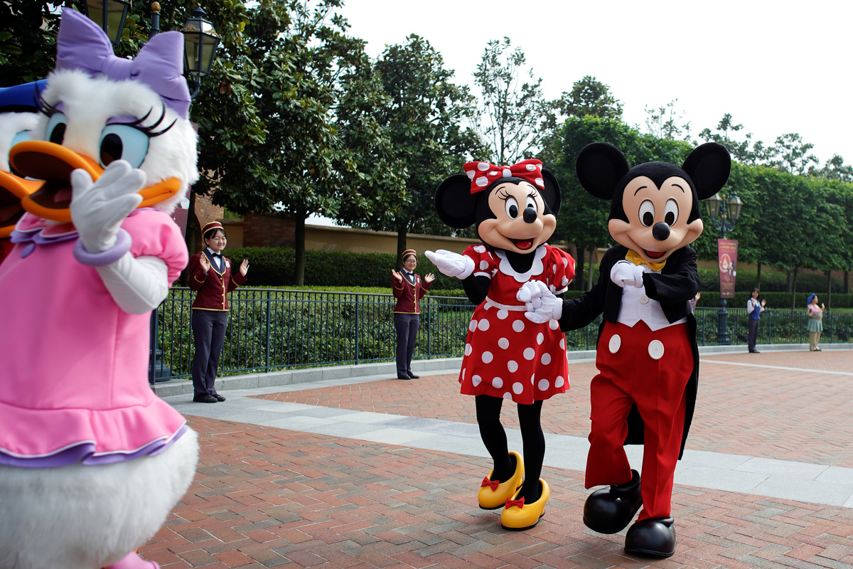 Visitors wearing face masks take pictures at the ceremony marking the reopening of Shanghai Disneyland following a shutdown due to the coronavirus disease (COVID-19) outbreak, at Shanghai Disney Resort in Shanghai, China May 11, 2020. REUTERS/Aly SongStaff members wearing protective face masks greet at Shanghai Disney Resort as the Shanghai Disneyland theme park reopens following a shutdown due to the coronavirus disease (COVID-19) outbreak, in Shanghai, China May 11, 2020. REUTERS/Aly SongA staff member wearing face mask gestures at Shanghai Disney Resort as the Shanghai Disneyland theme park reopens following a shutdown due to the coronavirus disease (COVID-19) outbreak, in Shanghai, China May 11, 2020. REUTERS/Aly SongVisitors wearing face mask line up following social distancing markers at Shanghai Disney Resort as the Shanghai Disneyland theme park reopens following a shutdown due to the coronavirus disease (COVID-19) outbreak, in Shanghai, China May 11, 2020. REUTERS/Aly SongDisney characters Mickey Mouse and Minnie Mouse are seen at Shanghai Disney Resort as the Shanghai Disneyland theme park reopens following a shutdown due to the coronavirus disease (COVID-19) outbreak, in Shanghai, China May 11, 2020. REUTERS/Aly SongA girl wearing face mask poses for a picture at Shanghai Disney Resort as the Shanghai Disneyland theme park reopens following a shutdown due to the coronavirus disease (COVID-19) outbreak, in Shanghai, China May 11, 2020. REUTERS/Aly SongStaff members wearing protective face masks greet at Shanghai Disney Resort as the Shanghai Disneyland theme park reopens following a shutdown due to the coronavirus disease (COVID-19) outbreak, in Shanghai, China May 11, 2020. REUTERS/Aly SongDisney character Mickey Mouse greets visitors at Shanghai Disney Resort as the Shanghai Disneyland theme park reopens following a shutdown due to the coronavirus disease (COVID-19) outbreak, in Shanghai, China May 11, 2020. REUTERS/Aly SongSecurity staff wear face masks at Shanghai Disney Resort as the Shanghai Disneyland theme park reopens following a shutdown due to the coronavirus disease (COVID-19) outbreak, in Shanghai, China May 11, 2020. REUTERS/Aly SongA security guard wears a face mask at Shanghai Disney Resort as the Shanghai Disneyland theme park reopens following a shutdown due to the coronavirus disease (COVID-19) outbreak, in Shanghai, China May 11, 2020. REUTERS/Aly SongStaff is seen at Shanghai Disney Resort as the Shanghai Disneyland theme park reopens following a shutdown due to the coronavirus disease (COVID-19) outbreak, in Shanghai, China May 11, 2020. REUTERS/Aly Song