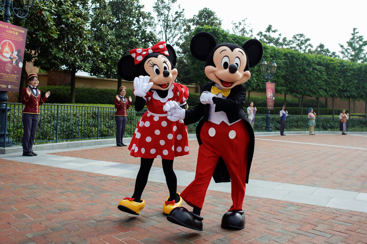 Disney characters Mickey Mouse and Minnie Mouse, among others, greet visitors at Shanghai Disney Resort as the Shanghai Disneyland theme park reopens following a shutdown due to the coronavirus disease (COVID-19) outbreak, in Shanghai, China May 11, 2020. REUTERS/Aly Song