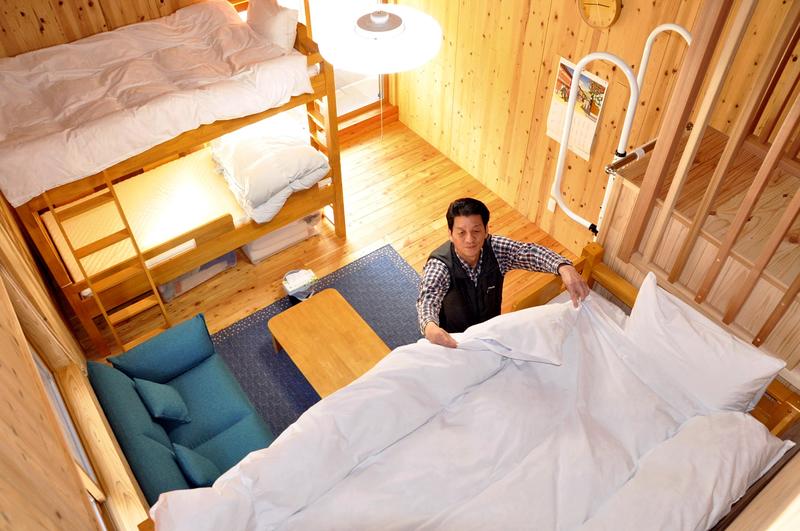 In August 2018, Sasaki began offering minpaku lodgings in his two-story house built with wood from Japanese cedar trees produced in the city. He has made two rooms available -- one Japanese-style, the other Western-style -- with a capacity each of up to four people.