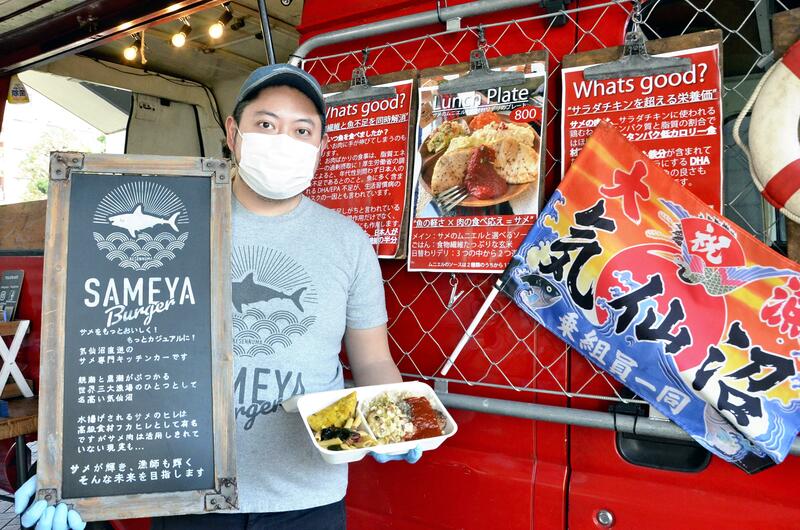 After much trial and error using shark meat from Kesennuma, he came up with recipes for shark pasta, paella, fried rice and other dishes. In 2017, he started his food truck business specializing in the apex predator of the sea.