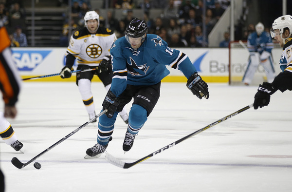 The Sharks did not make any changes to their forward group from Saturday's 4-1 win over the Arizona Coyotes, as Nikolay Goldobin dressed for his second straight game. Goldobin played 11:53 against the Coyotes and finished with four shots on goal, but was a spectator in the third period as coach Pete DeBoer shuffled his lines.