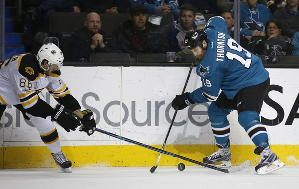 Thornton entered Sunday on a five-game point streak. He had assists in four straight games and scored Feb. 9 against the Bruins at TD Garden.
