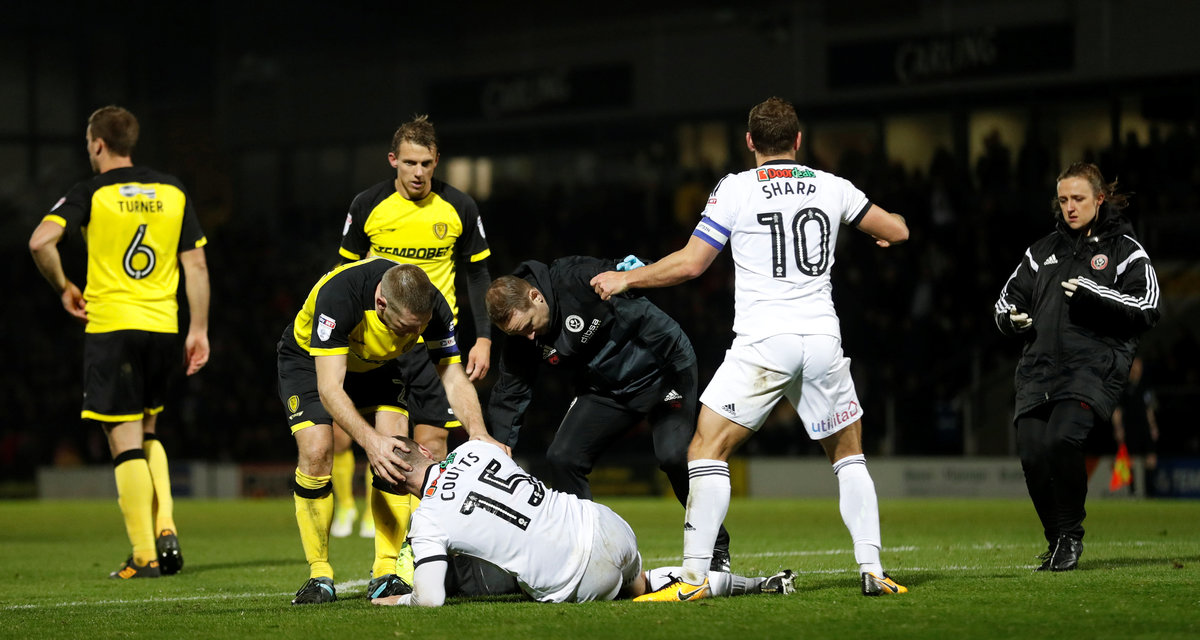 Soccer Football - Championship - Burton Albion vs Sheffield United - Pirelli Stadium, Burton, Britain - November 17, 2017 Sheffield United's Paul Coutts receives medical attention Action Images/Carl Recine Soccer Football - Championship - Burton Albion vs Sheffield United - Pirelli Stadium, Burton, Britain - November 17, 2017 Sheffield United's Paul Coutts in action with Burton Albion's Lucas Akins Action Images/Jason Cairnduff Soccer Football - Championship - Burton Albion vs Sheffield United - Pirelli Stadium, Burton, Britain - November 17, 2017 Sheffield United's Paul Coutts is stretchered off injured Action Images/Carl Recine Soccer Football - Championship - Burton Albion vs Sheffield United - Pirelli Stadium, Burton, Britain - November 17, 2017 Sheffield United's Paul Coutts lies injured Action Images/Carl Recine Soccer Football - Championship - Burton Albion vs Sheffield United - Pirelli Stadium, Burton, Britain - November 17, 2017 Sheffield United's Paul Coutts lies injured Action Images/Carl Recine Soccer Football - Championship - Burton Albion vs Sheffield United - Pirelli Stadium, Burton, Britain - November 17, 2017 Sheffield United's Billy Sharp celebrates scoring his sides first goal Action Images/Jason Cairnduff Soccer Football - Championship - Burton Albion vs Sheffield United - Pirelli Stadium, Burton, Britain - November 17, 2017 Sheffield United's Billy Sharp scores his sides first goal from the penalty spot Action Images/Jason Cairnduff