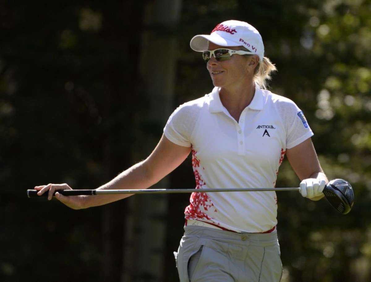 (Reuters) - Canadian Alena Sharp called a penalty on herself during the second round at the Manulife LPGA Classic but still managed to grab a share of the halfway lead in Cambridge, Ontario on Friday.