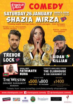 Shazia Mirza, an award-winning English comedian, writer and television and radio personality of Pakistani heritage, will take centre stage at the Standup Asia show at the Westin Grande Sukhumvit Hotel, Sukhumvit 19, on Jan 26 at 8.30pm.
