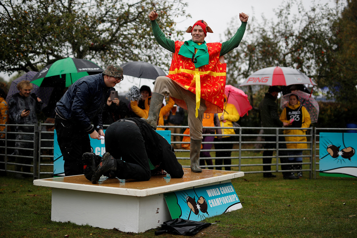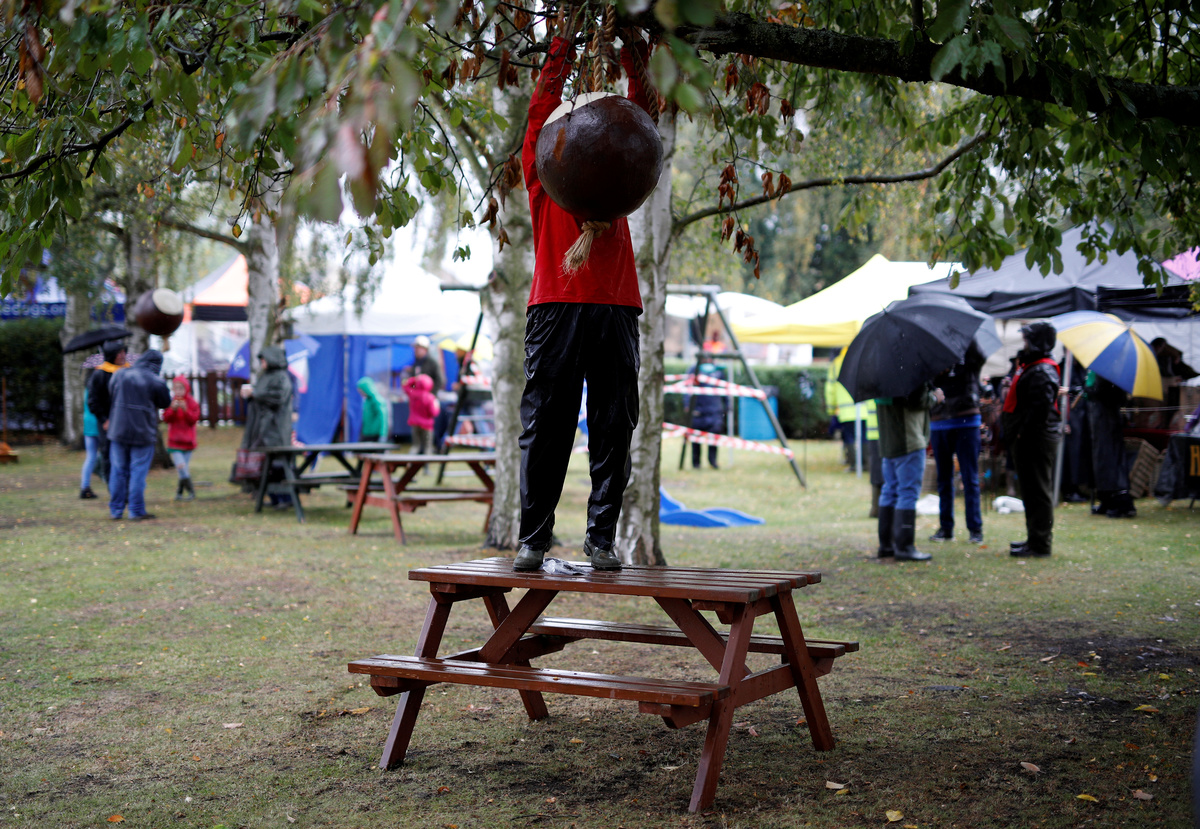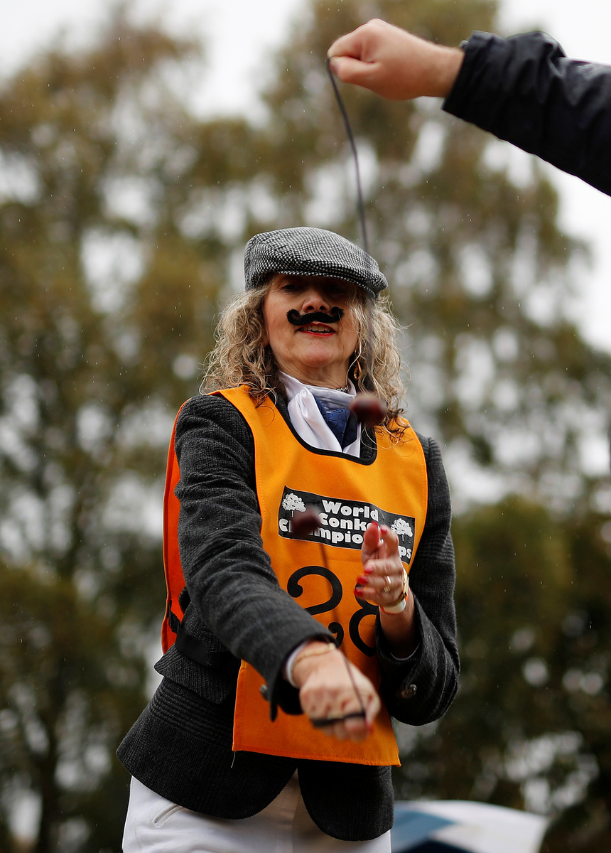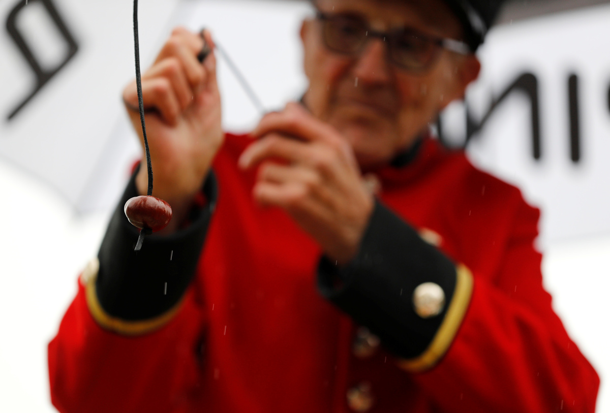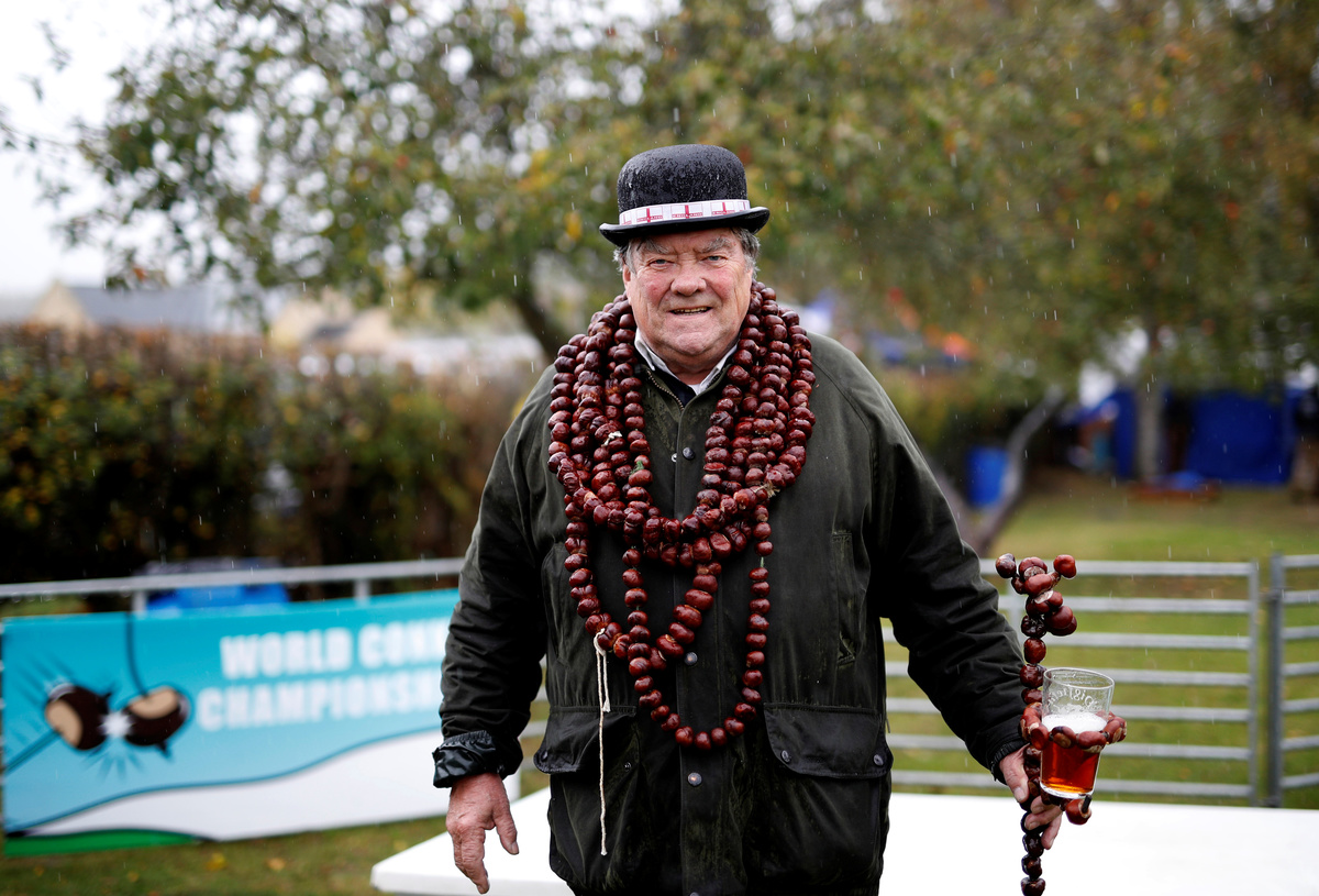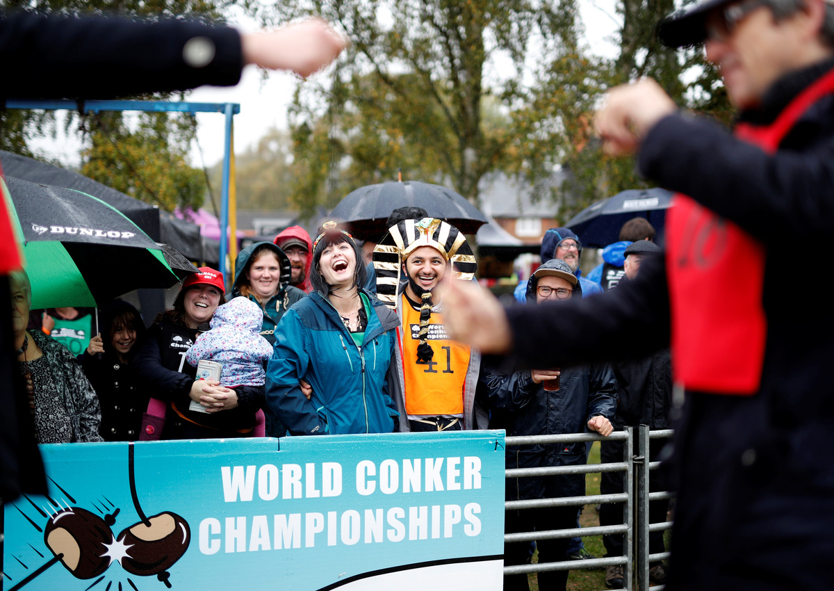 LONDON (Reuters) - Standing in a rain soaked English village, more than 200 competitors armed with horse chestnuts dangling from shoelaces faced off for the World Conker Championship.