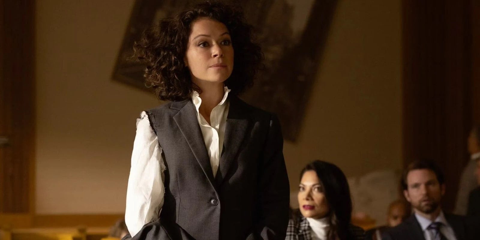 In my original pitch, it was an actual trial and it spanned multiple episodes. When we got into the writers’ room, inevitably things change as you’re developing the show and as you start writing. And one thing that we all realized very slowly was none of us are that adept at writing, you know, rousing trial scenes.