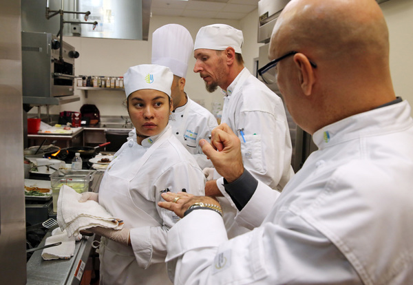 She looks comfortable, despite this being only her third month in a working kitchen. The way she slips behind and between the other students and professors, she is beginning to pick up an intuition that chefs and their staff develop.