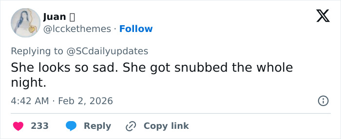“She looks so sad. I feel terrible for her,” a third said, with a fourth sympathizing, writing, “Baby, look at me. It is okay.”