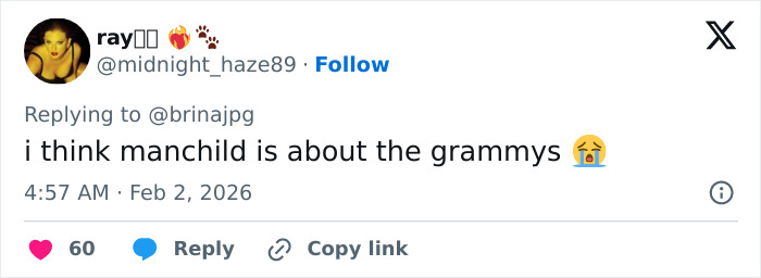 “Manchild deserved Song of the Year,” wrote one, while another added, “Manchild by Sabrina Carpenter was robbed.”