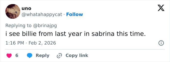 “I see Billie from last year in Sabrina this time,” observed another.