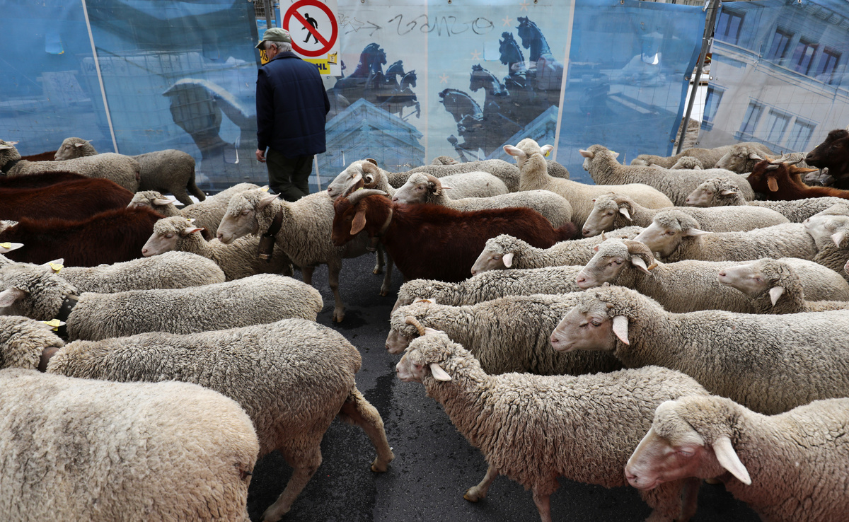 MADRID (Reuters) - Sheep replaced traffic on the streets of Madrid on Sunday as shepherds steered their flocks through the heart of the Spanish capital, following ancient migration routes.