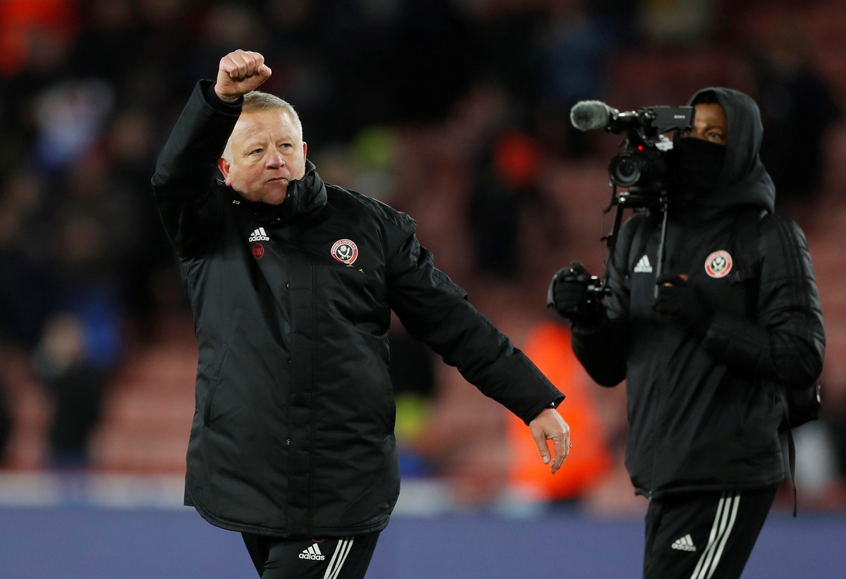 Soccer Football - Premier League - Sheffield United v Aston Villa - Bramall Lane, Sheffield, Britain - December 14, 2019 Sheffield United manager Chris Wilder celebrates after the match Action Images via Reuters/Lee SmithSoccer Football - Premier League - Sheffield United v Aston Villa - Bramall Lane, Sheffield, Britain - December 14, 2019 Sheffield United's John Fleck scores their second goal Action Images via Reuters/Lee Smith Soccer Football - Premier League - Sheffield United v Aston Villa - Bramall Lane, Sheffield, Britain - December 14, 2019 Aston Villa's Jack Grealish misses a penalty REUTERS/Jon Super Soccer Football - Premier League - Sheffield United v Aston Villa - Bramall Lane, Sheffield, Britain - December 14, 2019 Referee Peter Bankes before awarding a penalty to Aston Villa after a VAR review REUTERS/Jon SuperSoccer Football - Premier League - Sheffield United v Aston Villa - Bramall Lane, Sheffield, Britain - December 14, 2019 Sheffield United's John Fleck celebrates scoring their second goal with John Lundstram Action Images via Reuters/Lee Smith Soccer Football - Premier League - Sheffield United v Aston Villa - Bramall Lane, Sheffield, Britain - December 14, 2019 Aston Villa's Marvelous Nakamba in action with Sheffield United's Lys Mousset Action Images via Reuters/Lee Smith