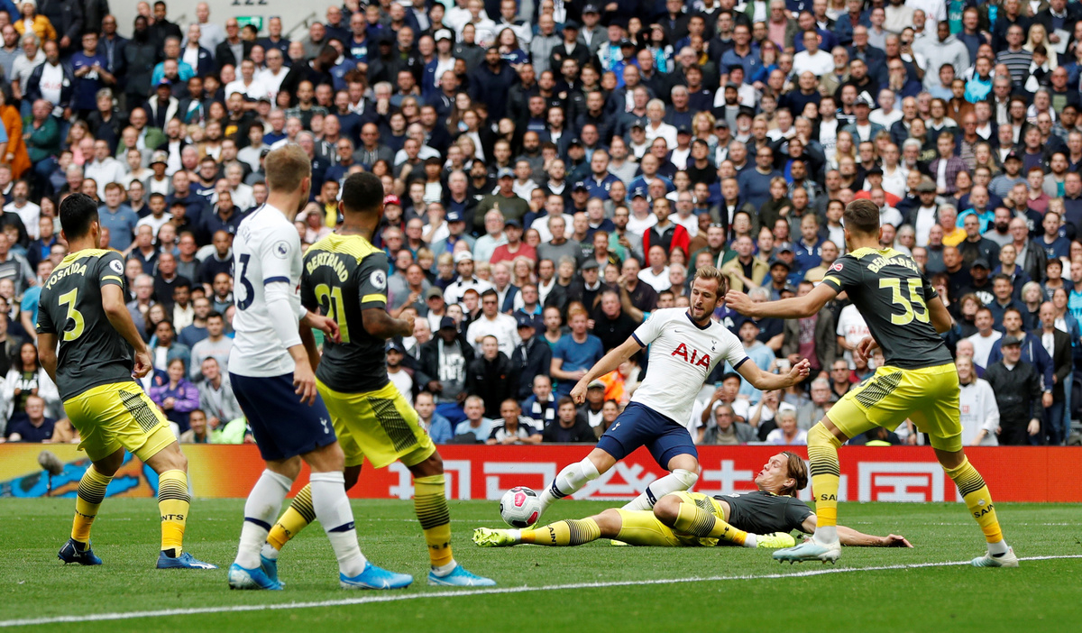 Soccer Football - Premier League - Tottenham Hotspur v Southampton - Tottenham Hotspur Stadium, London, Britain - September 28, 2019 Tottenham Hotspur's Harry Kane in action with Southampton's Jannik Vestergaard Action Images via Reuters/Paul Childs
