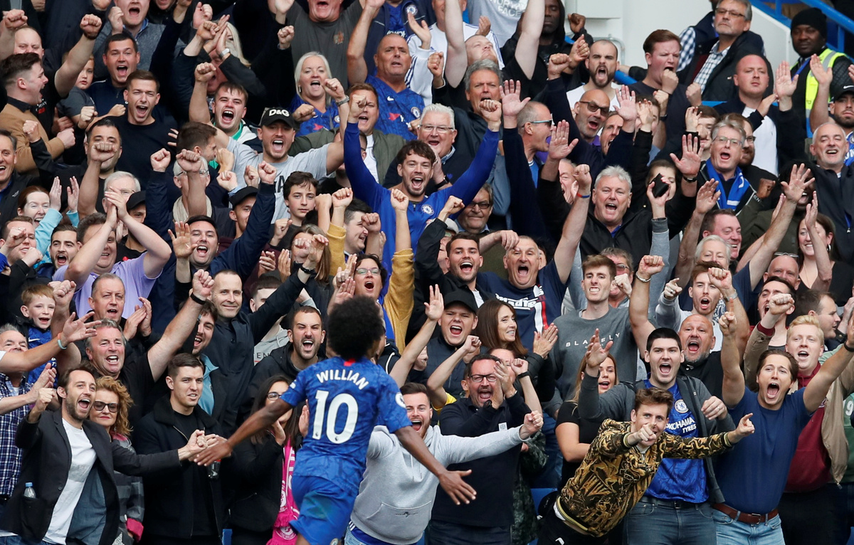 Soccer Football - Premier League - Chelsea v Brighton & Hove Albion - Stamford Bridge, London, Britain - September 28, 2019 Chelsea's Willian celebrates scoring their second goal REUTERS/David Klein