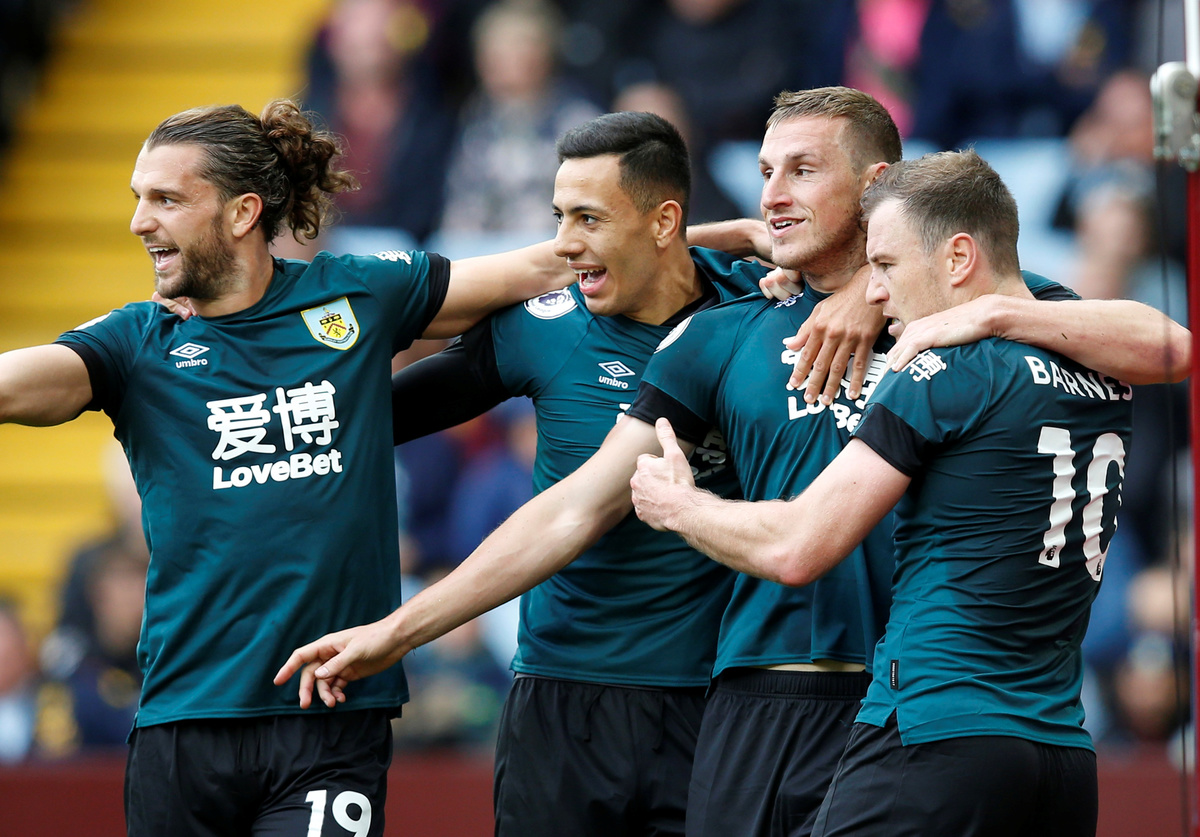 Soccer Football - Premier League - Aston Villa v Burnley - Villa Park, Birmingham, Britain - September 28, 2019 Burnley's Chris Wood celebrates scoring their second goal with team mates REUTERS/Andrew Yates