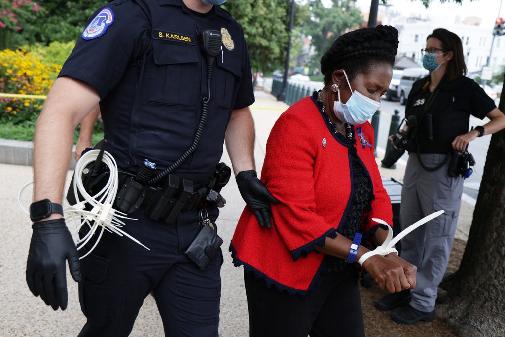 Representative Sheila Jackson-Lee, became the third member of Congress to be arrested in a series of nonviolent protests aimed at rallying support for federal voting legislation that activists say are needed to push back against new restrictive state laws.