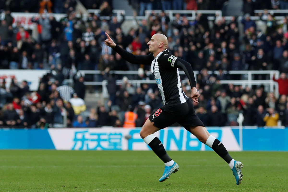 Soccer Football - Premier League - Newcastle United v Manchester City - St James' Park, Newcastle, Britain - November 30, 2019 Newcastle United's Jonjo Shelvey celebrates scoring their second goal REUTERS/Scott Heppell