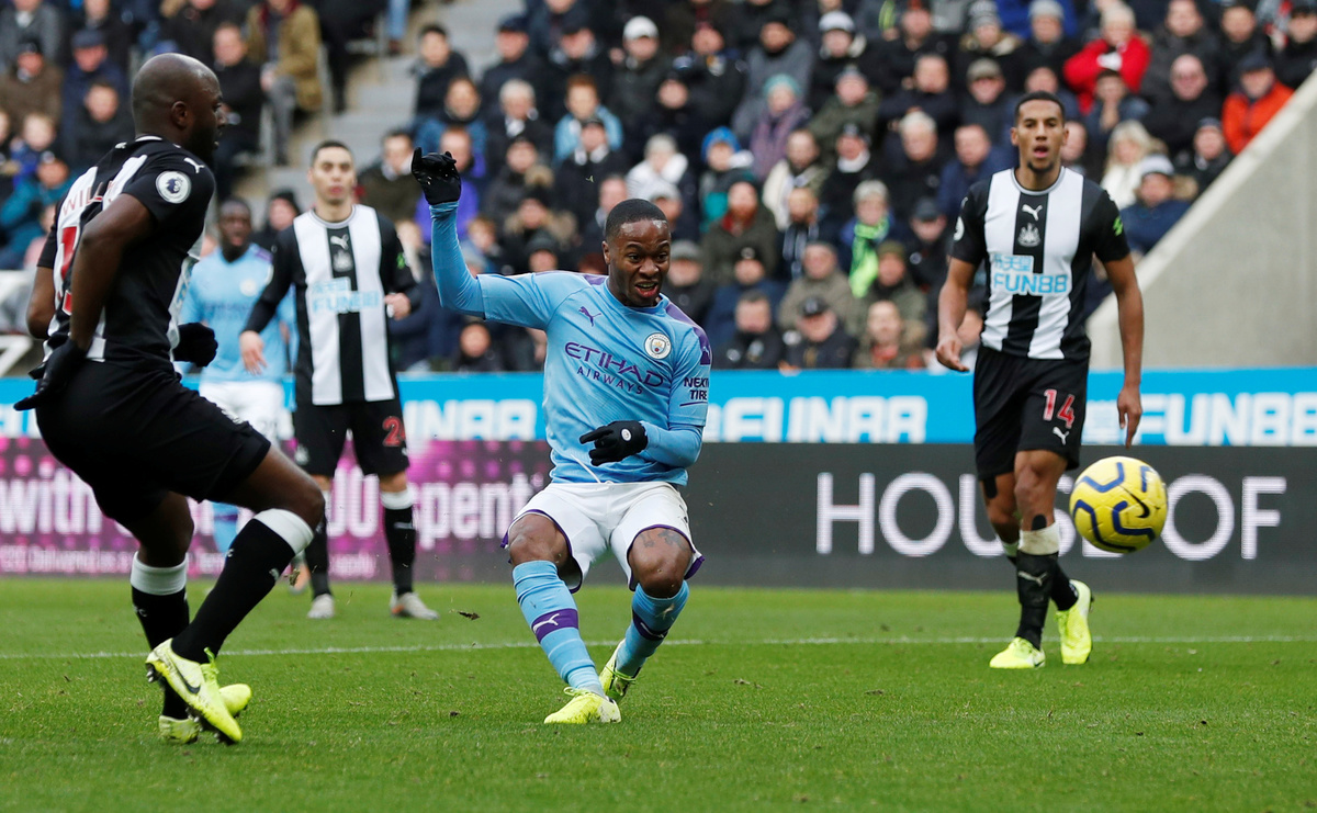 Soccer Football - Premier League - Newcastle United v Manchester City - St James' Park, Newcastle, Britain - November 30, 2019 Manchester City's Raheem Sterling scores their first goal Action Images via Reuters/Lee Smith