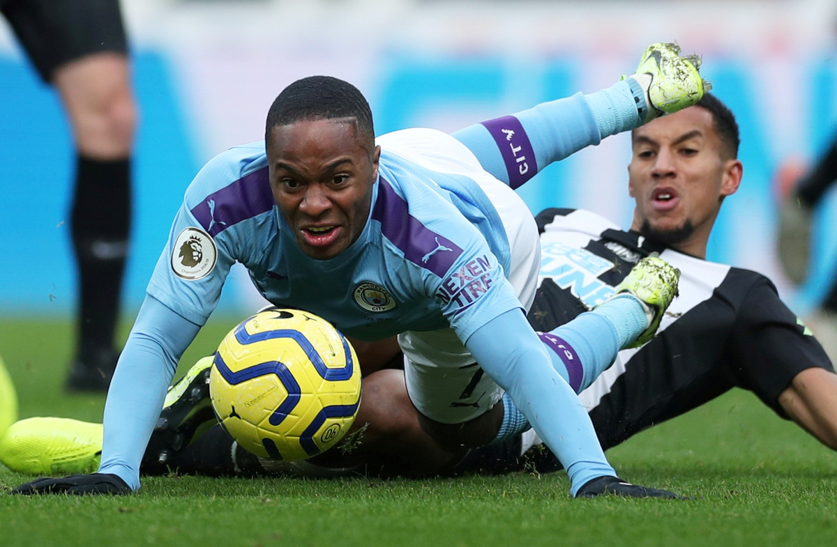Soccer Football - Premier League - Newcastle United v Manchester City - St James' Park, Newcastle, Britain - November 30, 2019 Manchester City's Raheem Sterling in action with Newcastle United's Martin Dubravka REUTERS/Scott Heppell