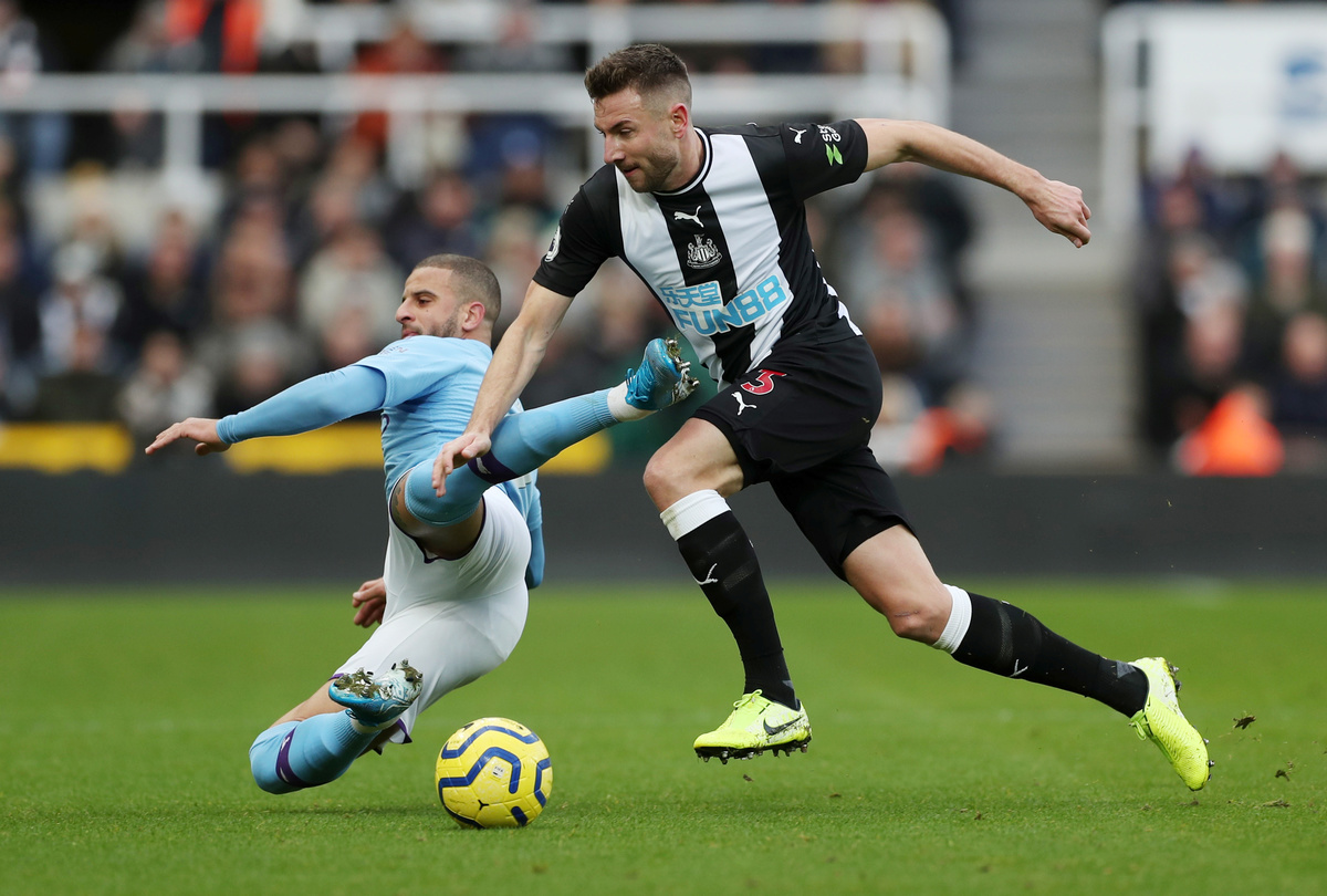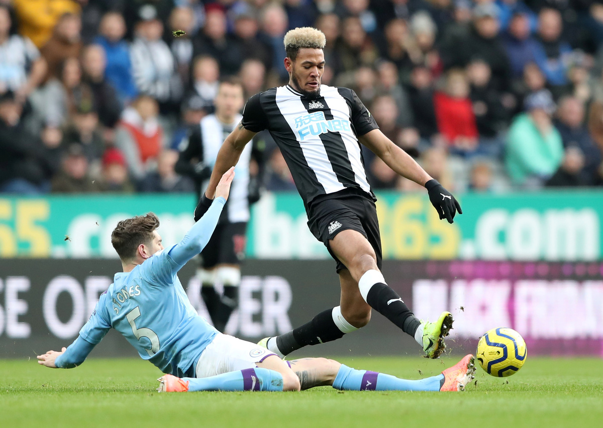 Soccer Football - Premier League - Newcastle United v Manchester City - St James' Park, Newcastle, Britain - November 30, 2019 Newcastle United's Jonjo Shelvey celebrates scoring their second goal Action Images via Reuters/Lee Smith Soccer Football - Premier League - Newcastle United v Manchester City - St James' Park, Newcastle, Britain - November 30, 2019 Manchester City's Benjamin Mendy in action with Newcastle United's Miguel Almiron Action Images via Reuters/Lee Smith Soccer Football - Premier League - Newcastle United v Manchester City - St James' Park, Newcastle, Britain - November 30, 2019 Manchester City's Raheem Sterling in action with Newcastle United's Isaac Hayden Action Images via Reuters/Lee Smith Soccer Football - Premier League - Newcastle United v Manchester City - St James' Park, Newcastle, Britain - November 30, 2019 Manchester City's Kyle Walker in action with Newcastle United's Jetro Willems Action Images via Reuters/Lee Smith Soccer Football - Premier League - Newcastle United v Manchester City - St James' Park, Newcastle, Britain - November 30, 2019 Manchester City's Raheem Sterling celebrates scoring their first goal Action Images via Reuters/Lee Smith Soccer Football - Premier League - Newcastle United v Manchester City - St James' Park, Newcastle, Britain - November 30, 2019 Newcastle United's Joelinton in action with Manchester City's John Stones REUTERS/Scott Heppell Soccer Football - Premier League - Newcastle United v Manchester City - St James' Park, Newcastle, Britain - November 30, 2019 Newcastle United's Paul Dummett in action with Manchester City's Kyle Walker Action Images via Reuters/Lee Smith