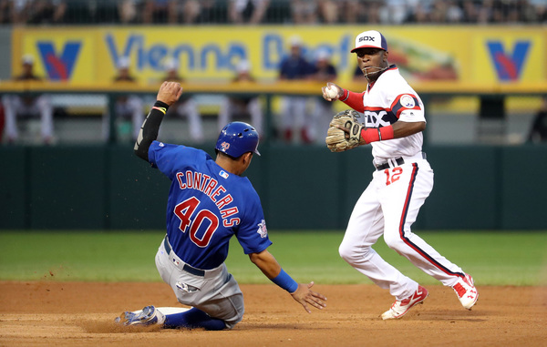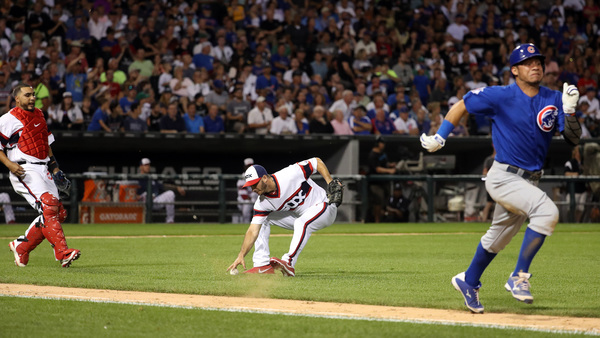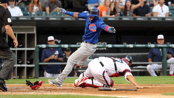 Cubs reliever Travis Wood walked three in a row, the last being Tyler Saladino, after giving up a single to Todd Frazier to give the Sox a 3-0 lead in the sixth.