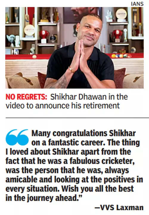 “It is important to turn the page to move forward in a story, and in life,” Dhawan said in a video posted on social media. “I’m leaving with peace in my heart that I played so long for India. I’ve told myself not to feel sad that you won’t play for India again, but feel happy that you played for your country (at all).”