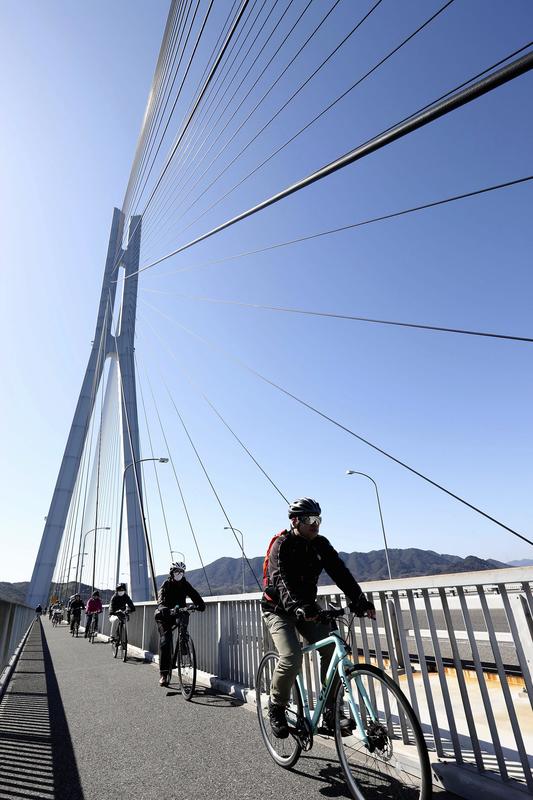 Among the three routes linking the Shikoku and Honshu regions via bridges, the expressway is the only one offering a bicycle lane, attracting more than 300,000 cyclists from Japan and overseas each year.