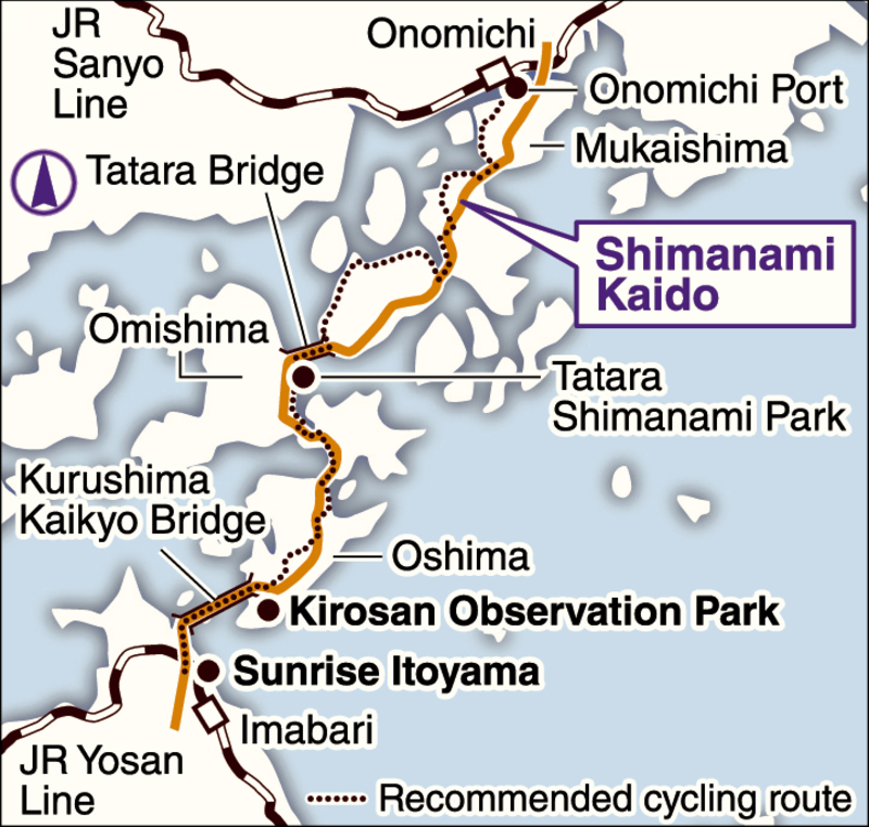 The expressway got even more attention this year when the Kojien dictionary, revised for the first time in a decade, listed it with an incorrect explanation about islands on the route. Following the error, some locals were even heard saying the new dictionary should be further revised to tout the area as "a sacred spot for cyclists."