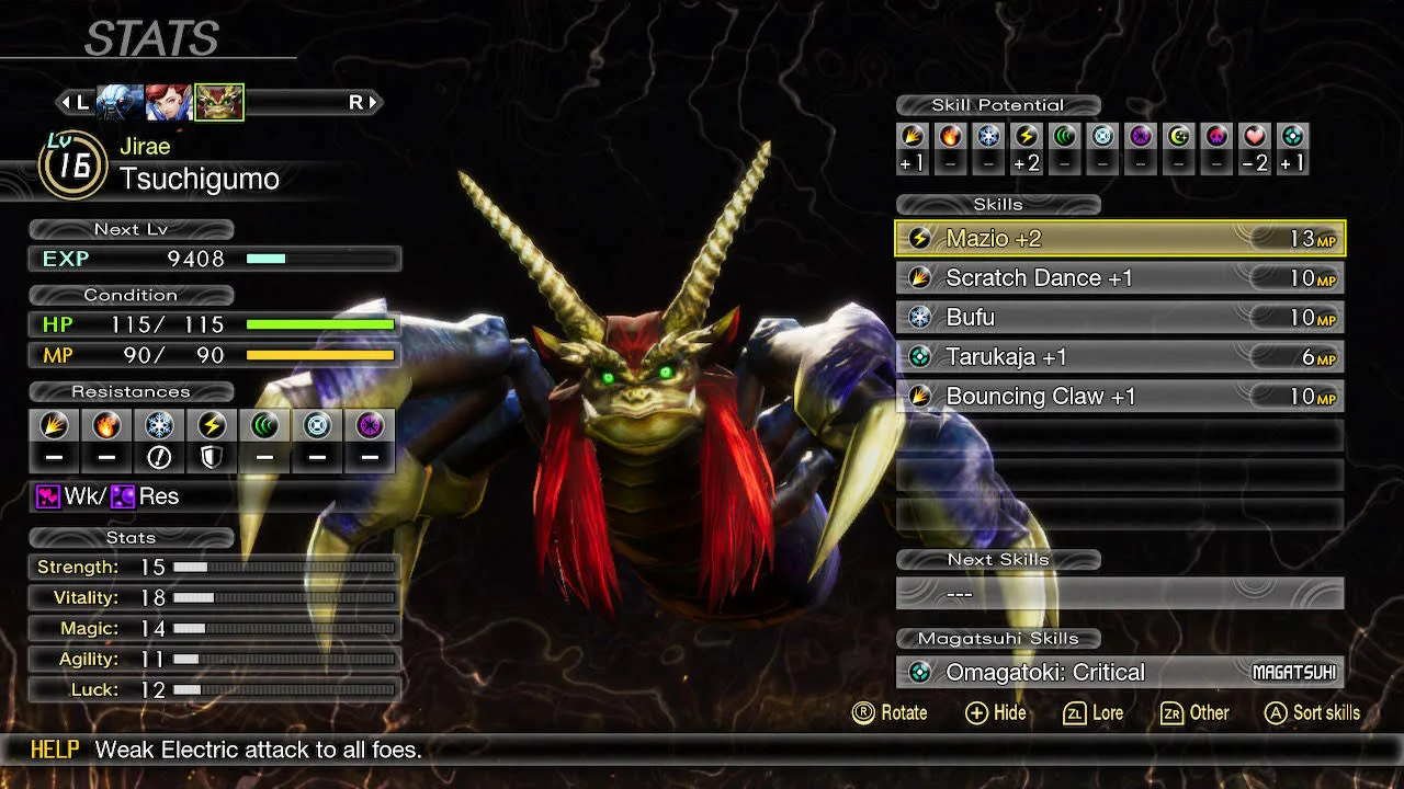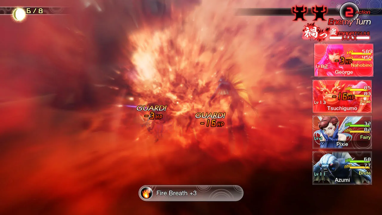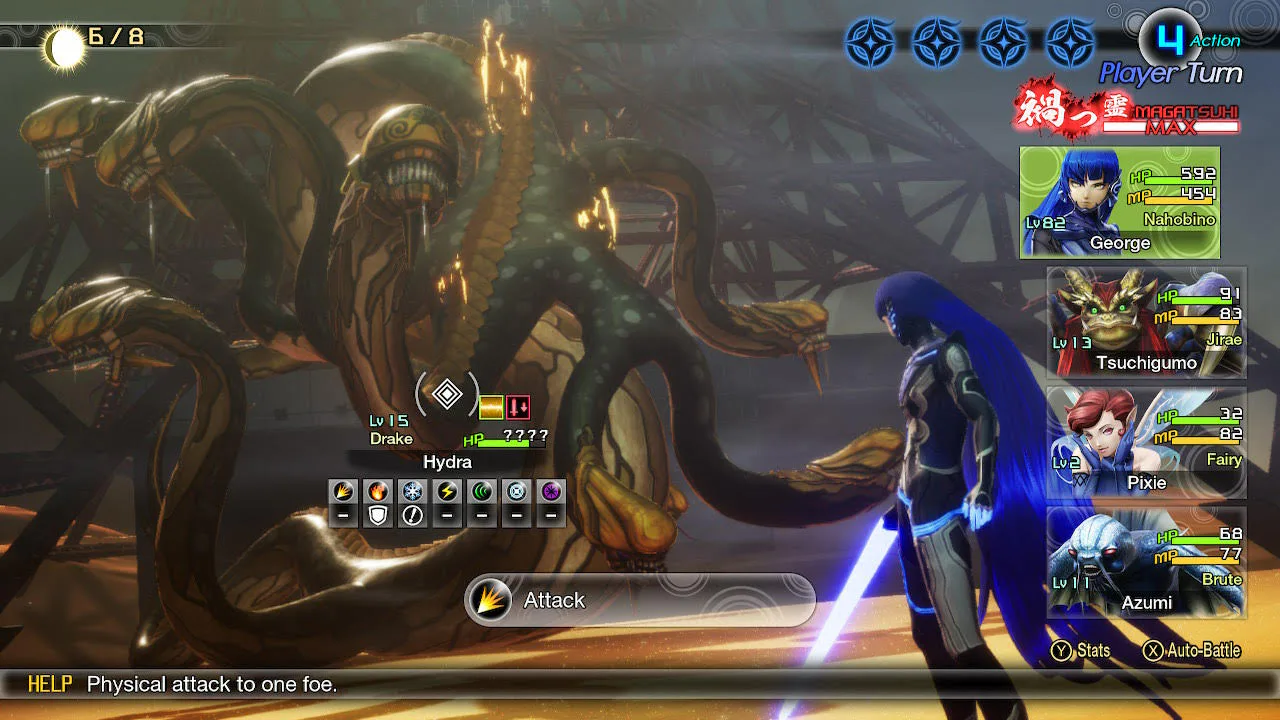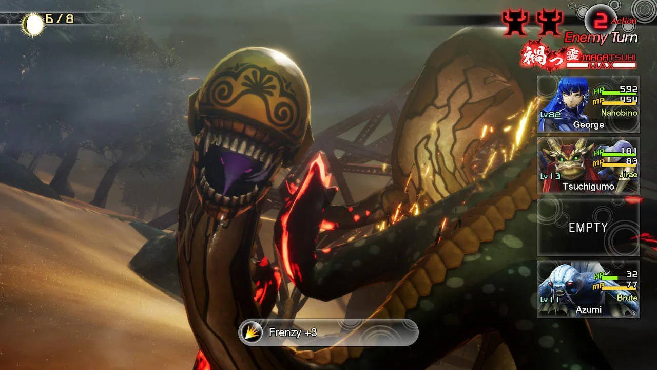 After depleting Hydra’s HP down to about 50 percent, its tentacles fall off. It’ll start using Frenzy, which is an incredibly powerful physical attack. This attack will likely KO some of your frailer demons like Pixie, but Tsuchigumo should be resilient enough to survive a few of these.