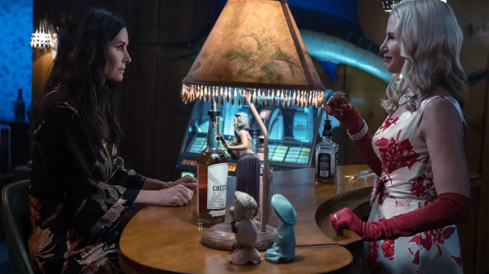 Fresh off her triumphant encore as Gale Weathers in“Scream,” Courteney Cox returns to the horror/comedy genre in the Starz limited series “Shining Vale,” and she delivers a knockout performance as The Woman in the Attic Who Takes Too Many Pills and Is Haunted by a Horny Ghost.