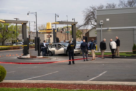 A McDonald’s employee, who asked not to be named, told the Chicago Sun-Times that two people got out of a grey car in the drive-thru and started shooting at Adams’ car.