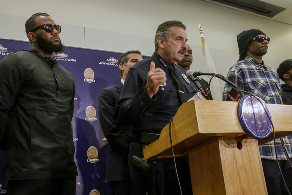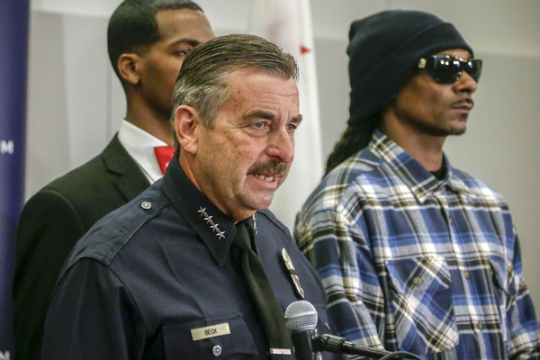 When the ceremony ended, as the LAPD's newest officers threw their hats into the air and hugged, police led a handful of the marchers into the department's glass headquarters. Snoop Dogg and The Game had a private meeting with Garcetti, Beck and other top police officials.