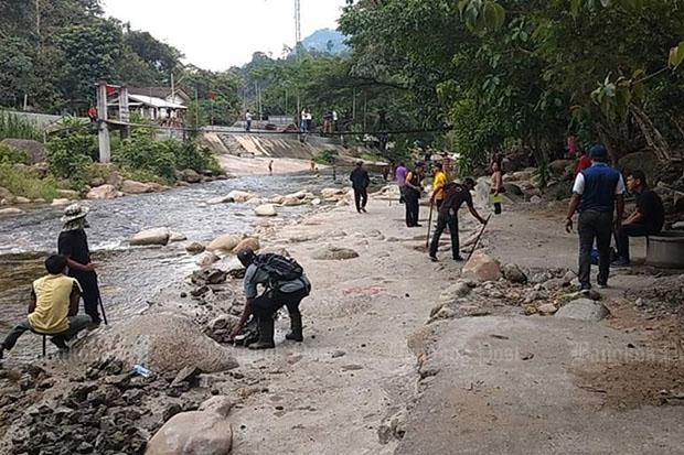 Workers started dismantling the concrete platform built into Klong Tha Dee, a landmark of the village in Lan Saka district, after the Region 4 Marine Office gave them a five-day deadline to rehabilitate the site. Authorities from various agencies on Tuesday drew a line establishing where the bank of the canal is supposed to be.