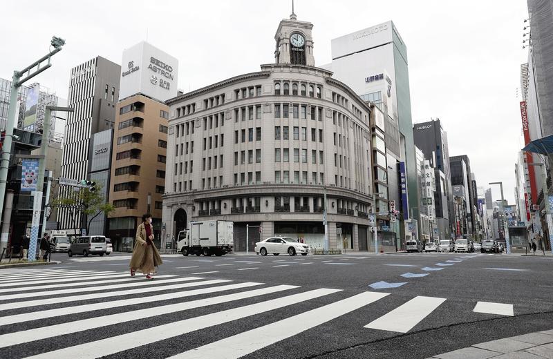 Tokyo's upscale Ginza district, for example, is usually crowded with shoppers from the morning on weekends and vehicles are not allowed to enter one of its main streets in the afternoons. However, this weekend feature has been suspended in response to a stay-at-home request made by Tokyo Gov. Yuriko Koike, and few people were seen in the area on Saturday.