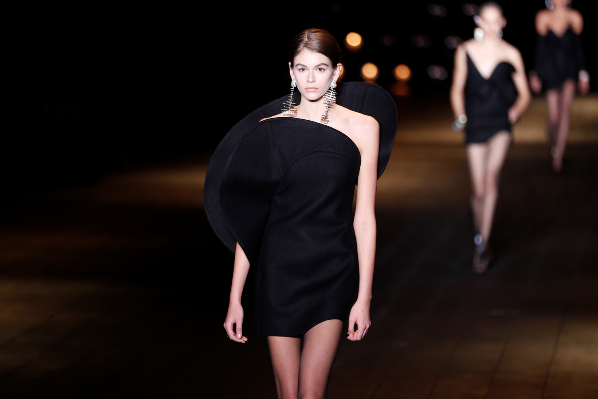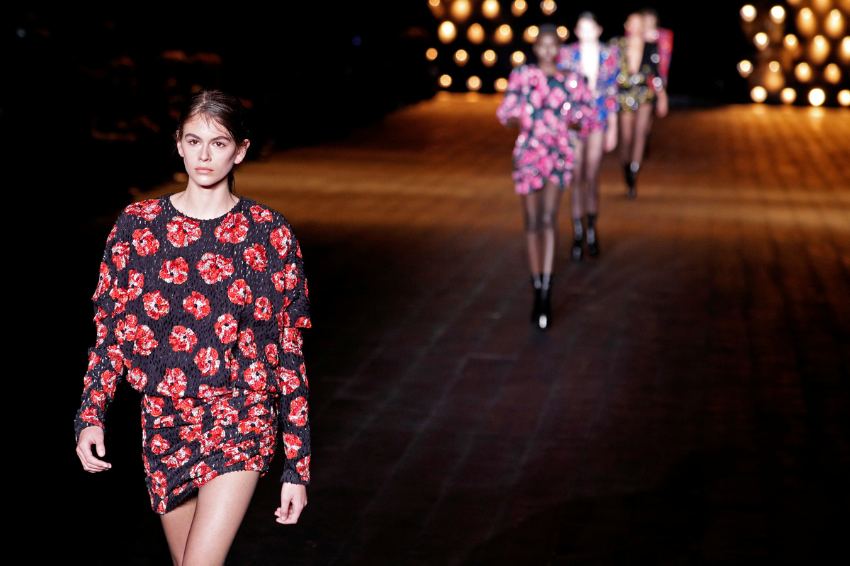 Model Kaia Gerber presents creations by designer Anthony Vaccarello as part of his Autumn/Winter 2018-2019 women's ready-to-wear collection show for fashion house Saint Laurent during Fashion Week in Paris, France, February 27, 2018. REUTERS/Pascal Rossignol