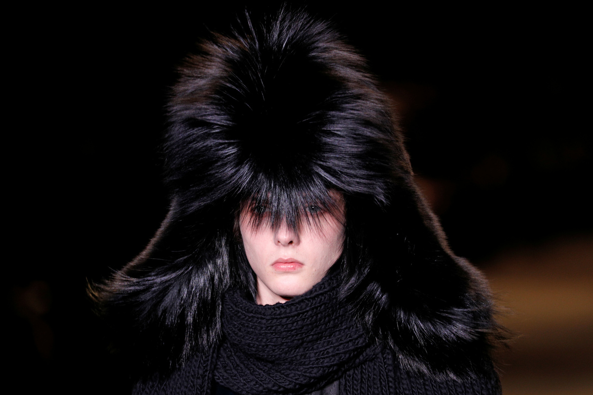 Spectators and models were shielded from the worst of the freezing weather at the Paris Fashion Week event on Tuesday.