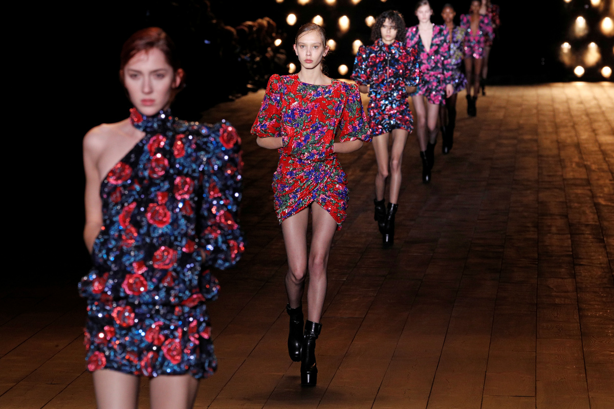 Designer Anthony Vaccarello appears at the end of his Autumn/Winter 2018-2019 women's ready-to-wear collection show for fashion house Saint Laurent during Fashion Week in Paris, France, February 27, 2018. REUTERS/Pascal RossignolModels present creations by designer Anthony Vaccarello as part of his Autumn/Winter 2018-2019 women's ready-to-wear collection show for fashion house Saint Laurent during Fashion Week in Paris, France, February 27, 2018. REUTERS/Pascal RossignolModels present creations by designer Anthony Vaccarello as part of his Autumn/Winter 2018-2019 women's ready-to-wear collection show for fashion house Saint Laurent during Fashion Week in Paris, France, February 27, 2018. REUTERS/Pascal RossignolModels present creations by designer Anthony Vaccarello as part of his Autumn/Winter 2018-2019 women's ready-to-wear collection show for fashion house Saint Laurent during Fashion Week in Paris, France, February 27, 2018. REUTERS/Pascal RossignolModels present creations by designer Anthony Vaccarello as part of his Autumn/Winter 2018-2019 women's ready-to-wear collection show for fashion house Saint Laurent during Fashion Week in Paris, France, February 27, 2018. REUTERS/Pascal RossignolModels present creations by designer Anthony Vaccarello as part of his Autumn/Winter 2018-2019 women's ready-to-wear collection show for fashion house Saint Laurent during Fashion Week in Paris, France, February 27, 2018. REUTERS/Pascal RossignolModels present creations by designer Anthony Vaccarello as part of his Autumn/Winter 2018-2019 women's ready-to-wear collection show for fashion house Saint Laurent during Fashion Week in Paris, France, February 27, 2018. REUTERS/Pascal RossignolModels present creations by designer Anthony Vaccarello as part of his Autumn/Winter 2018-2019 women's ready-to-wear collection show for fashion house Saint Laurent during Fashion Week in Paris, France, February 27, 2018. REUTERS/Pascal RossignolModels present creations by designer Anthony Vaccarello as part of his Autumn/Winter 2018-2019 women's ready-to-wear collection show for fashion house Saint Laurent during Fashion Week in Paris, France, February 27, 2018. REUTERS/Pascal Rossignol