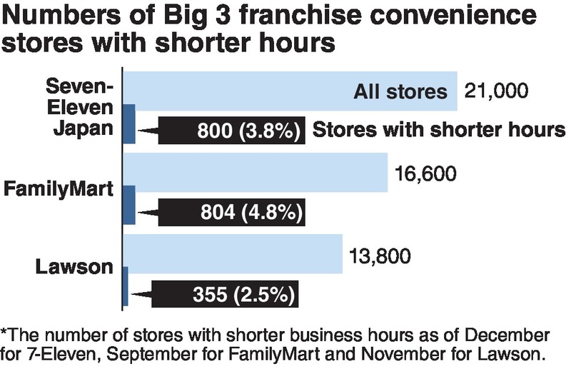 Convenience store operators have not changed their 24-hour operations in principle. The number of stores adopting shorter business hours has not increased because they concluded contracts that gave a bigger portion of profits to franchise shops that operated around the clock.