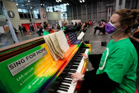 For people on the road to immunity from the coronavirus, experiencing live music in the same space that served as a field hospital at the height of the pandemic was a fitting accompaniment on a day of hope.