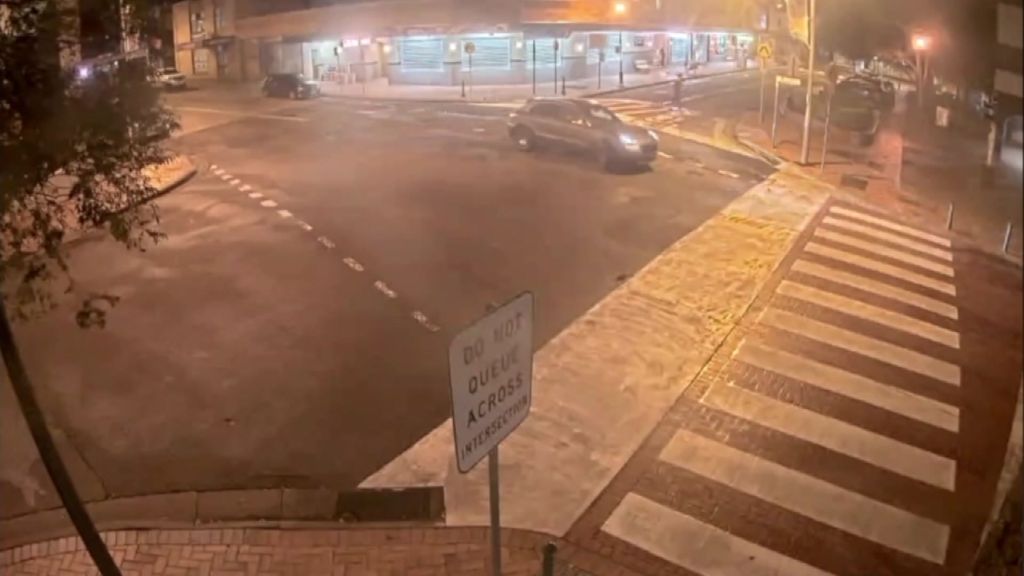 CCTV vision shows a grey Porsche leaving the crime scene shortly after the incident, with three people inside.