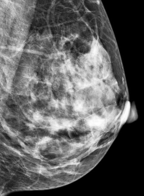 As you can see from the slider below, dense breasts can also make a mammogram more difficult to interpret.