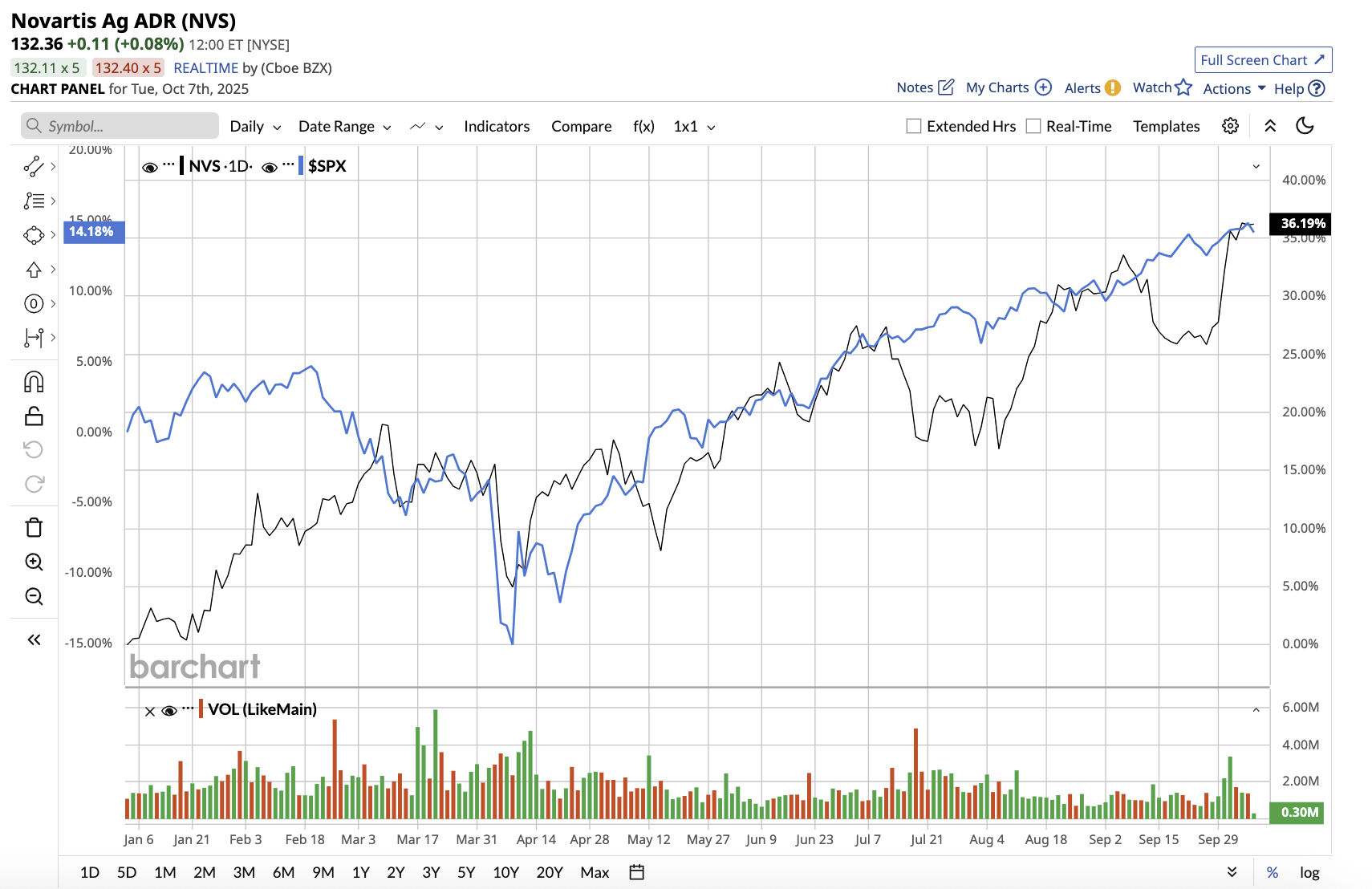 Switzerland-based global healthcare company Novartis (NVS) is gaining momentum this year, thanks to solid pipeline execution, new regulatory wins, high-value license transactions, capital return to shareholders, and positive market sentiment. Novartis stock has surged 36.3% year-to-date, outperforming the broader market.